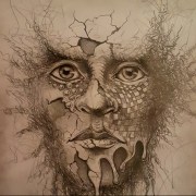 A different take on a surrealism, combining a traditional pencil sketch, further moved away from reality with the use of AI.